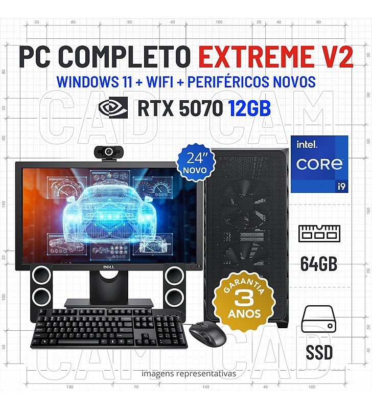 CONJUNTO 3D/CAD EXTREME V2 | i9-12900KF | 64GB RAM | 960GB SSD | RTX5070-12GB COM MONITOR + ACESSORIOS