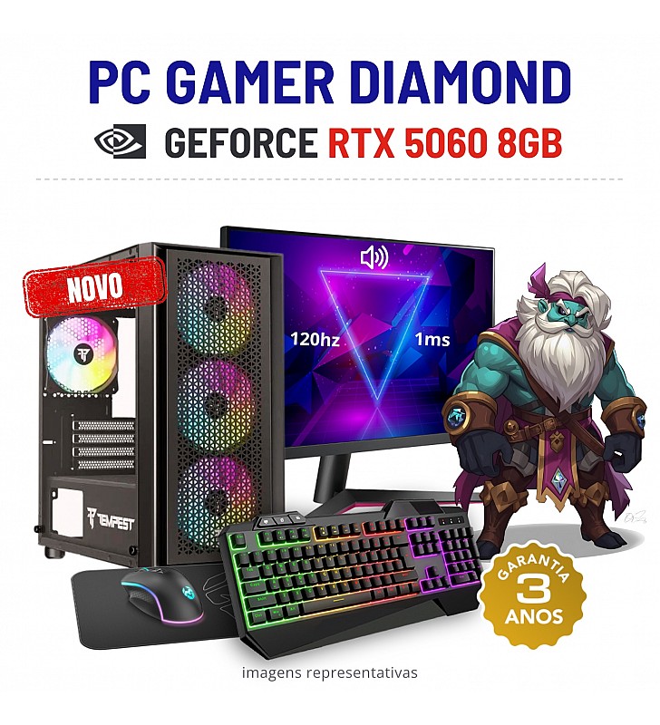 CONJUNTO GAMER DIAMOND | RTX5060-8GB | i5-12GEN=i7-10700KF | 32GB RAM | 960GB SSD COM MONITOR + ACESSORIOS