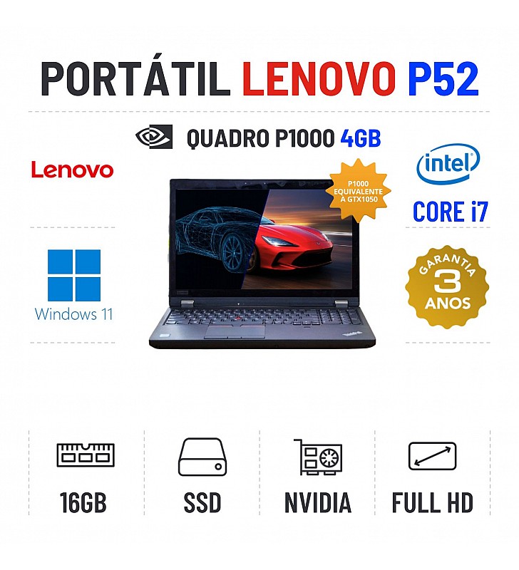LENOVO P52 | 15.6" FULLHD | i7-8750H | 16GB RAM | 480GB SSD | QUADRO P1000 4GB = GTX1050 | TECLADO NUMERICO