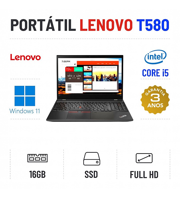 LENOVO THINKPAD T580 | 15.6" FULLHD | i5-8250U | 16GB RAM | 240GB SSD | TECLADO NUMÉRICO