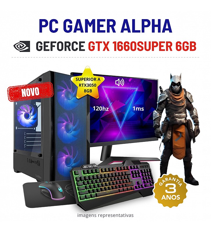 CONJUNTO GAMER ALPHA | GTX1660SUPER-6GB=RTX3050-8GB | RYZEN 3 = i7-7700K | 16GB RAM | 480GB SSD COM MONITOR + ACESSORIOSNovo com 3 Anos de Garantia