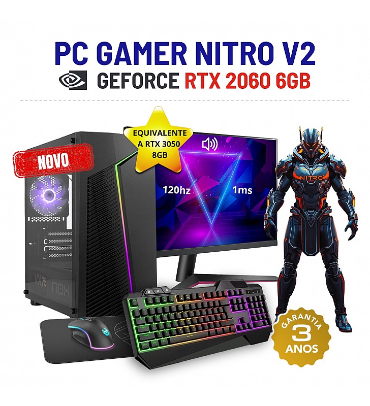 CONJUNTO GAMER NITRO V2 | RTX2060-6GB SUPERIOR A RTX3050-8GB | i3-12GEN=I7-9700 | 32GB RAM | 480GB SSD COM MONITOR + ACESSORIOS